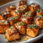 - Fry the salmon bites until golden and crispy, about 3-4 minutes per side.
