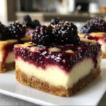 These blackberry cheesecake bars feature a buttery graham cracker crust and creamy cheesecake layered with fresh blackberries, making them a perfect summer dessert.