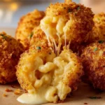 Delicious air-fried macaroni and cheese balls, crispy on the outside and gooey on the inside, perfect for snacking or as an appetizer.