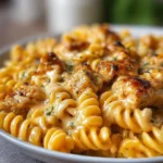 A creamy and cheesy pasta dish with Cajun-spiced chicken and vibrant veggies, perfect for a weeknight dinner.