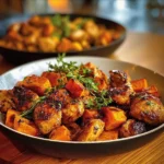 A cozy one-pan dish featuring tender chicken, sweet potatoes, and a medley of spices, perfect for a quick weeknight meal.