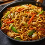 A comforting bowl of Chicken Lo Mein featuring tender chicken, chewy noodles, and vibrant vegetables, perfect for a satisfying weeknight meal.