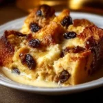 A cozy dessert made with cinnamon raisin bread soaked in a rich custard and baked to golden perfection, perfect for brunch or dessert.