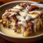 A delightful fusion dessert combining classic cinnamon rolls with a creamy custard for a cozy treat.