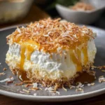 Coconut cream lush is a delightful dessert featuring layers of creamy coconut goodness over a buttery graham cracker crust, perfect for summer gatherings.