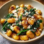 A comforting dish of potato gnocchi in a creamy sauce with spinach and salty feta cheese, perfect for weeknight dinners or impressing guests.