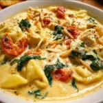 A cozy and flavorful soup full of tender chicken, sun-dried tomatoes, and a creamy broth, perfect for a warm meal at home.