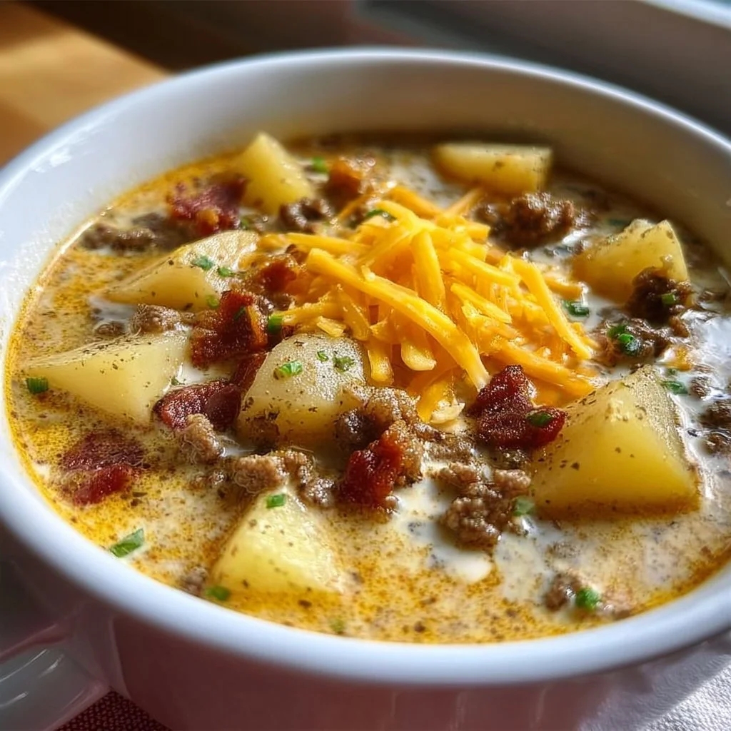 A cozy and hearty creamy potato hamburger soup that’s perfect for chilly evenings.