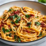 A delightful creamy vegan pasta dish combining sun-dried tomatoes and a rich sauce that’s perfect for any occasion.
