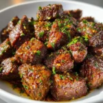 Tender chunks of steak slow-cooked in a rich garlic butter sauce, perfect for any occasion.
