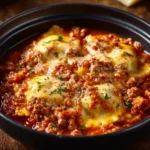 A comforting dish that layers cheesy ravioli with marinara sauce for a delicious spin on traditional lasagna.