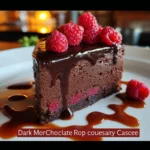 - Once the cakes have cooled, layer them with the raspberry mousse in between and on top. Decorate with fresh raspberries and a dusting of cocoa powder if desired.