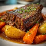 A cozy and comforting Dutch oven pot roast featuring tender beef and a medley of root vegetables, perfect for cold nights.