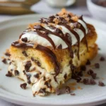 A fluffy, moist cake layered with a sweet, creamy filling reminiscent of traditional cannoli, featuring ricotta cheese, mini chocolate chips, and zesty orange.
