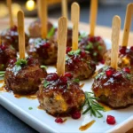Bite-sized meatballs threaded onto skewers, perfect for parties or a fun dinner option.