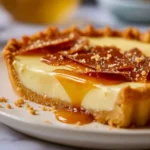 - Finish and serve: Top the set tart with caramel shards, slice, and serve.