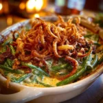 A cozy and beloved classic combining green beans with creamy mushroom sauce and a crunchy topping.