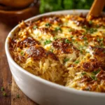 A warm and comforting casserole combining tender chicken, savory onions, and orzo pasta in a delicious bake.