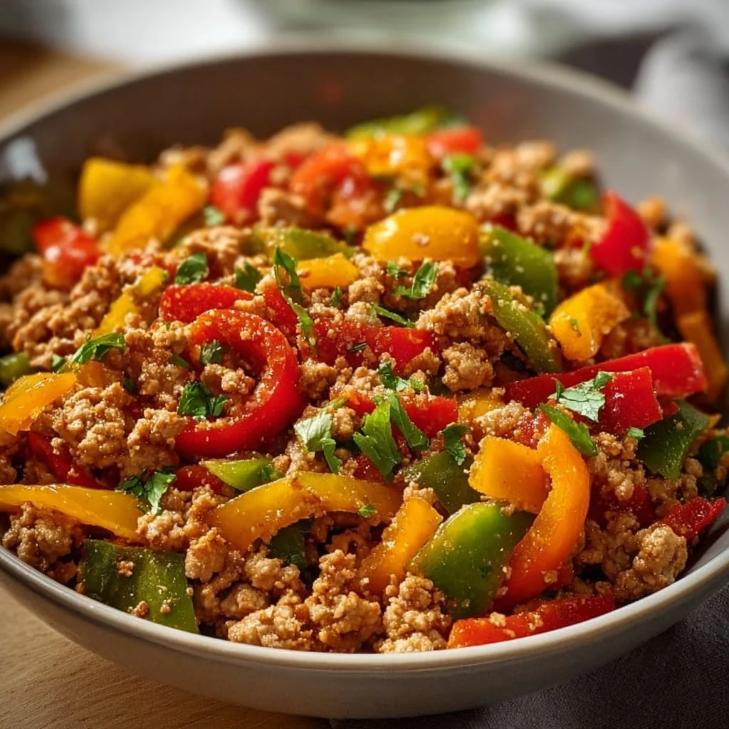 A quick, healthy, one-pan meal with lean ground turkey and vibrant peppers, perfect for lunch or dinner.