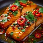 A sweet and spicy salmon dish that combines rich flavors for a delightful dinner experience.