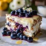 - Once chilled, slice into squares, and serve as is or garnish with extra blueberries and a sprinkle of lemon zest.