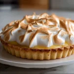 A classic dessert featuring a zesty lemon filling, a flaky crust, and a cloud-like layer of fluffy meringue.