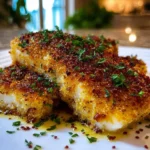 Crispy on the outside and flaky on the inside, Parmesan crusted cod is a delightful fish dish coated with a savory mixture of Parmesan cheese, breadcrumbs, and herbs.