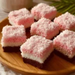 Delightful cake bars topped with creamy frosting and shredded coconut, perfect for any gathering.