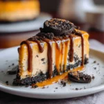 A creamy pumpkin butterscotch cheesecake with a crunchy Oreo crust, perfect for cozy autumn gatherings.