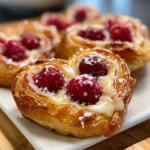 Charming pastries filled with raspberry jam and shaped like sweet hearts, perfect for breakfast or brunch.
