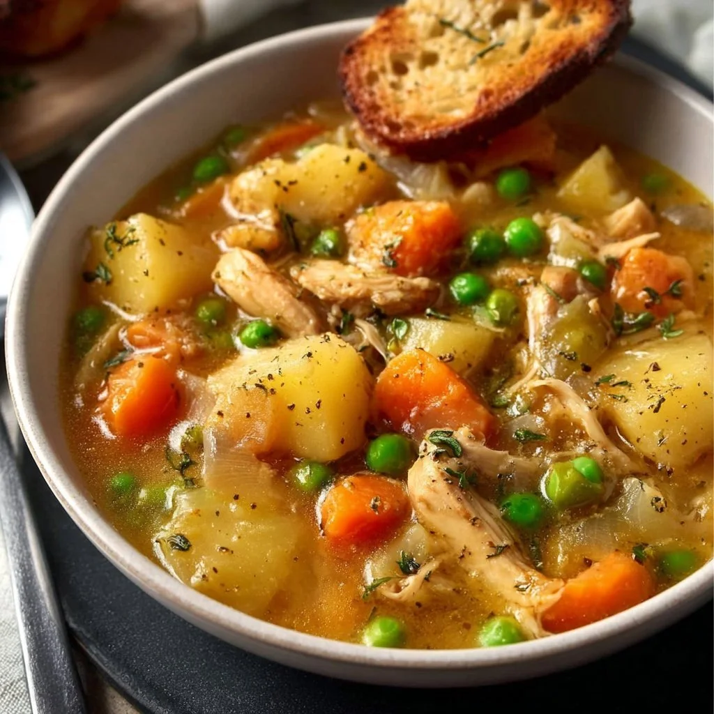 A comforting and hearty one-pot meal of slow cooker chicken stew, packed with tender chicken, vibrant veggies, and a rich broth.
