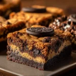 A delightful dessert combining gooey brownies, rich cookie dough, and creamy Oreo cookies for an indulgent treat.